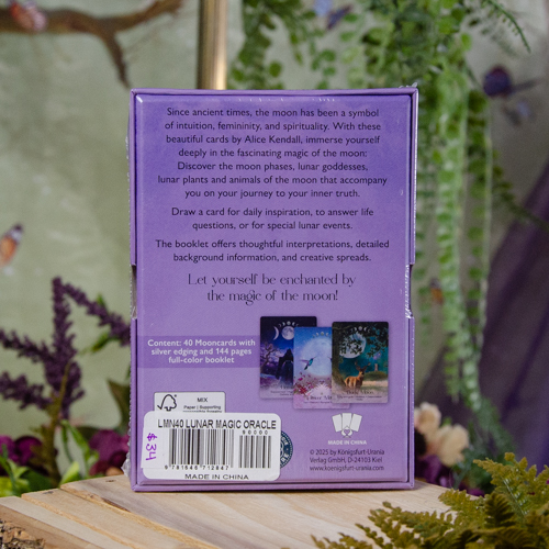 Let yourself be enchanted by the magic of the moon! Since ancient times, the moon has symbolized intuition, femininity, and spiritual guidance. With this beautifully illustrated deck by Alice Kendall, you can explore the phases of the moon, lunar goddesses, and the mystical animals that accompany you on your journey to inner truth.