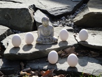 On March 20 or 21, the Sun crosses the equator from south to north, marking for us the first day of spring. The darkness is overcome and we honor the Sun in its glorious return to power. From this point on the days grow longer and the Sun appears higher and higher in the sky each day. The Vernal or Spring Equinox, also called Ostara in many pagan traditions, is one of four solar festivals that occur during the year. We take the time now to celebrate all that the onset of spring heralds forth ~ hope, rebirth and resurrection, fertility and new life. The spring rains wash away the last dregs of winter and along with the thaw, filling the creeks and streams with fast moving currents. The maple sap is flowing and the time for boiling it down to syrup is at hand. The sweet songs of the spring birds fill the air. All around us the world is alive with blooming plants and new animal life. Decorate eggs today as they are the symbol of potential and new life.